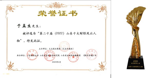 J9集团|国际站官网集团总裁于孟生荣膺“2022山东十大财经风云人物”