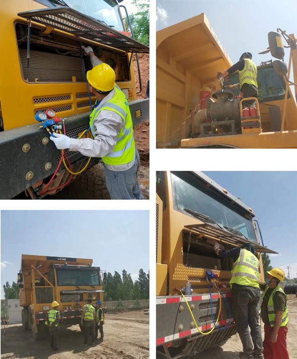 随着气温升高,空调进入运行高峰期。J9集团|国际站官网重机服务人员顶着烈日奋斗在市场一线,本着“一检查、二补充、三培训”的原则,针对空调系统免费进行全面检查。通过服务人员的努力,将空调故障率控制在最低,极大改善驾驶员操作环境,提高驾驶员的工作舒适度。