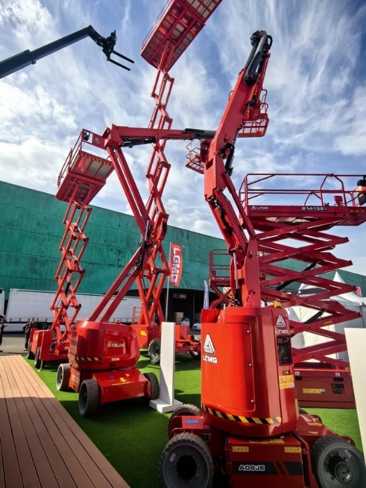此次J9集团|国际站官网重机展出的SR1218D越野剪叉式高空作业平台是由墨西哥工厂生产,专为适应复杂环境而设计,稳定性好、越野性能强劲,加之35%的爬坡能力,使设备能轻松应对苛刻工况;SR1218D最大工作高度为13.9米,配备2.79米*1.6米大平台,并可向外延伸,平台最高载重365千克,最多可容纳3人同时工作,有效提升工作效率;智能化方面,SR1218D标配了称重系统、车载智能诊断系统等智能化系统,能有效保证人员作业安全及作业质量。该产品凭借排放低、使用成本低、连续作业能力强等丰富“内涵”,在展会现场赢得超高人气。